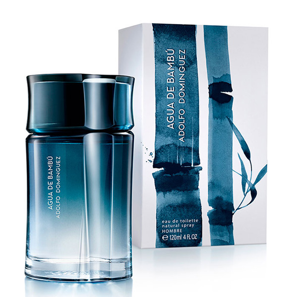 Bambu Agua Man EDT de Adolfo Dominguez. Con un efecto de frescor de larga duración, muy energético, con fuerza y naturalidad cítrica. El Bambu Agua Man EDT de Adolfo Dominguez tiene unas notas de salida intensas, gracias a la pimienta negra, cítricos de pomelo, bergamota, savia de bambú y té verde. Con unas notas de corazón de madera de cedro, jazmín y especias. Sus notas de fondo son madera de ámbar vegetal, norlimbanol, haba tonka y musc.