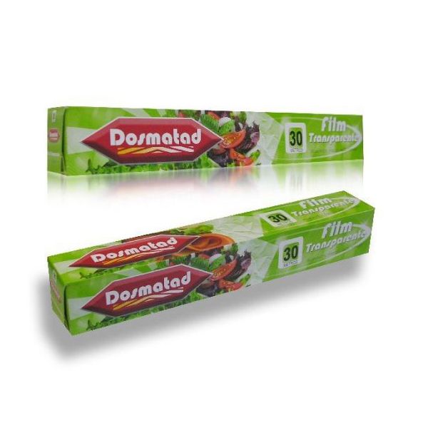 Film muy adherente, se extiende y se adhiere perfectamente a los bordes de los recipientes: evita la sequedad de los alimentos y la transferencia de olores en la nevera. Extra-ancho, para cubrir mejor todos los platos de una sola vez. El Film de Dosmatad es muy fácil de manejar. Formato rollo de 30 m