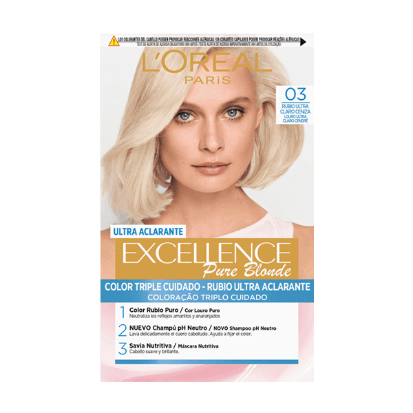 Excellence, Crema Color Ultra-Aclarante Triple Cuidado Avanzado. Protege el cabello antes, durante y después de la coloración con una cobertura óptima de canas.